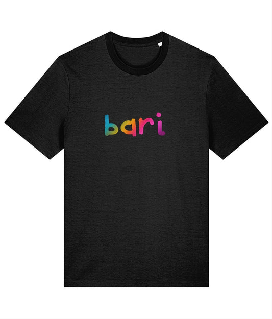 Standard crew fit BARI SINGER rainbow print t-shirt, organic cotton barbershop tee, choir merch