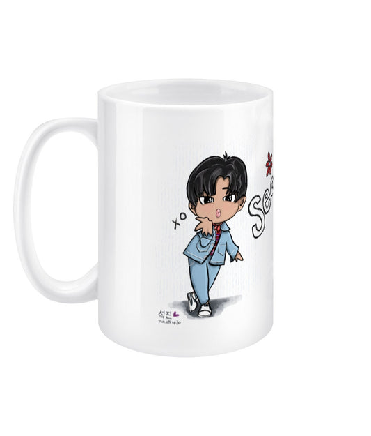 Seokjin Run BTS ep30 mug, BTS fan gift, Jin merch, 15oz white ceramic chibi Bangtan mug
