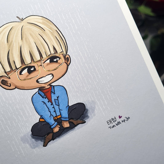 V Run BTS chibi art print, archive quality, Taehyung BTS illustration, Episode 30 Run BTS, bangtan character art, cute TaeTae print