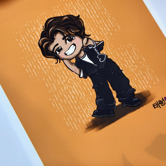 V chibi art print, archive quality, Taehyung BTS illustration, bangtan character art, cute TaeTae print