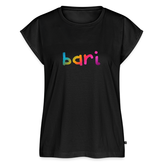 Women’s fit rolled cap sleeve BARI SINGER rainbow print t-shirt