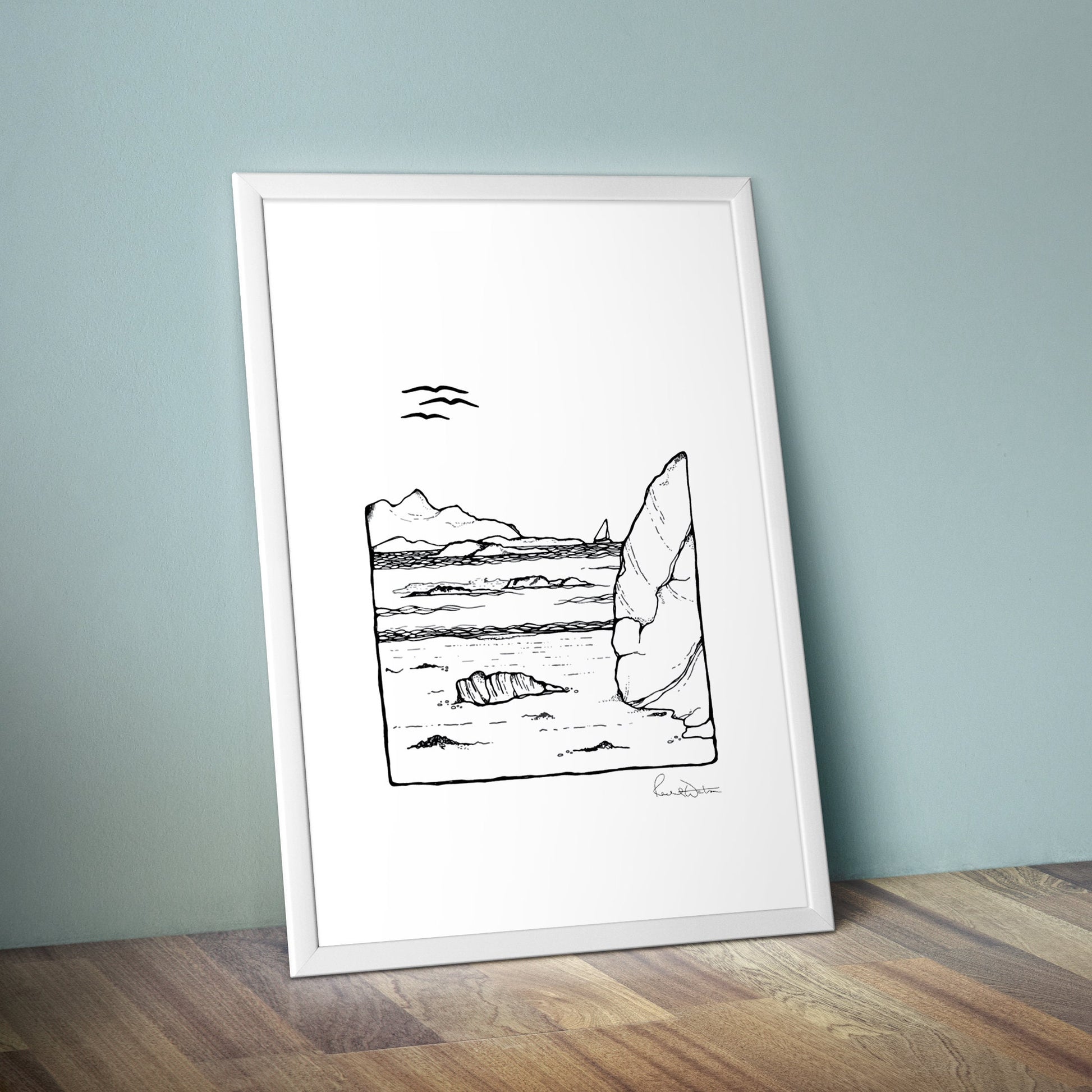 Featuring possibly the best beach I have ever been to in my life, where the sea is clearest, the sand is softest, and the peace is absolute, this drawing is printed using archival ink and paper, ready to pop into your favourite frame. Monochrome so that it fits in with any decor in any room, maybe it reminds you of a trip, or inspires you to take a future one.