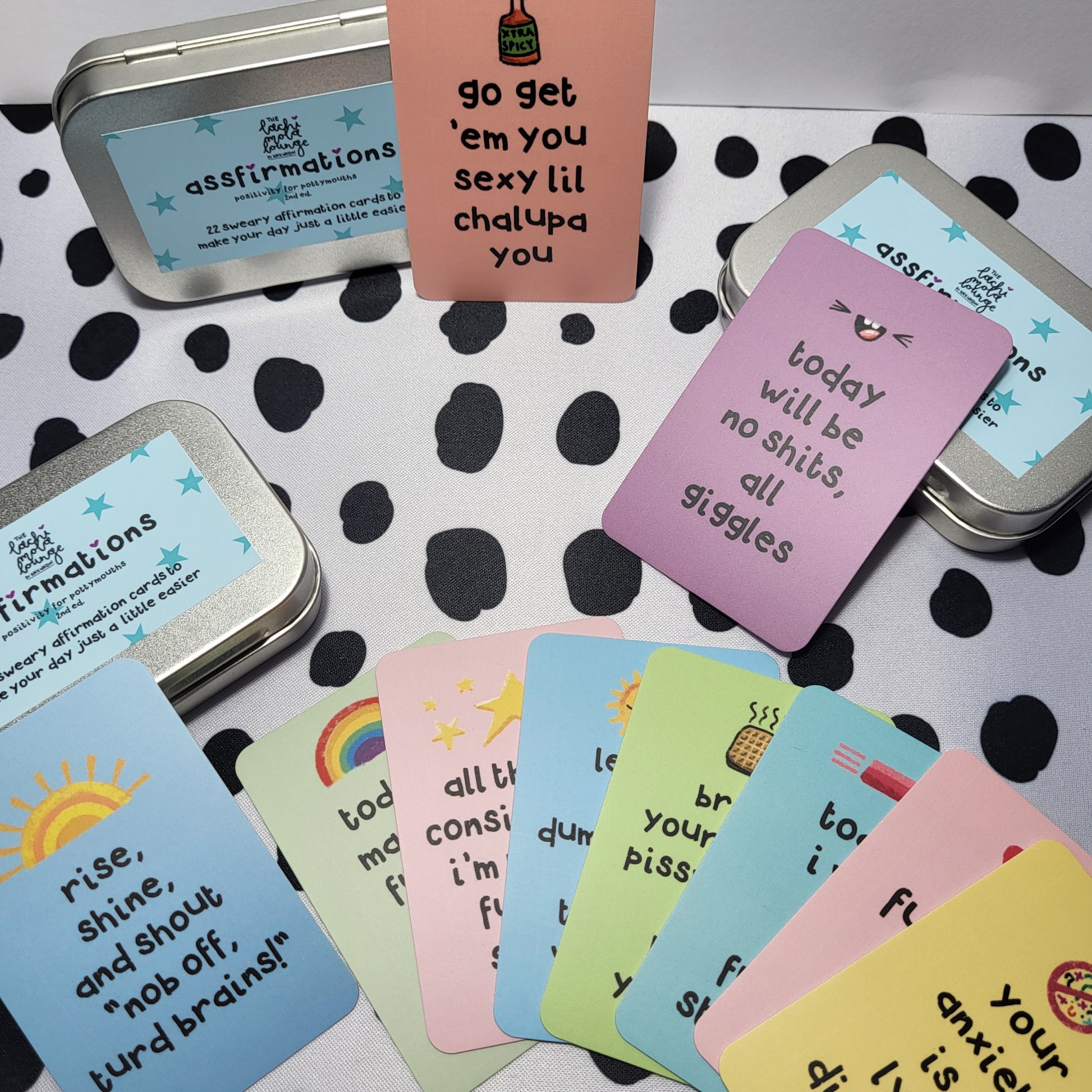 Assfirmations 2nd Ed. gift tin - sweary positivity cards set, motivation & affirmations for pottymouths!