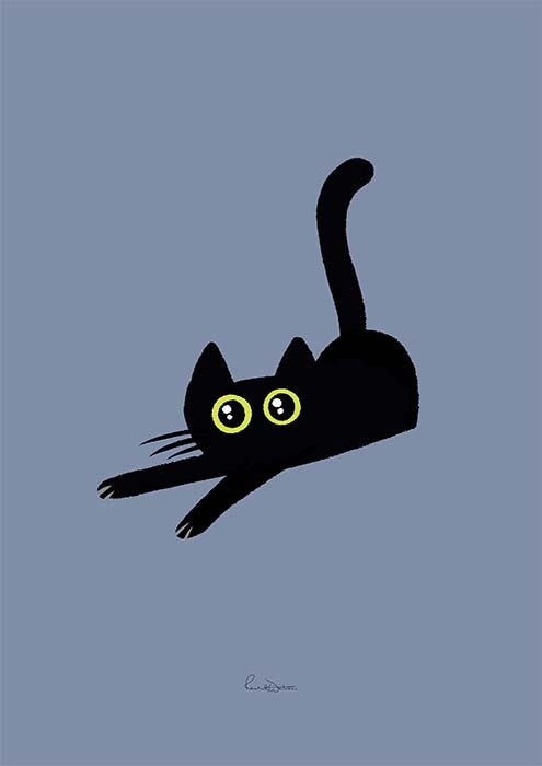 Bear Cat Pounce print, black cat illustration