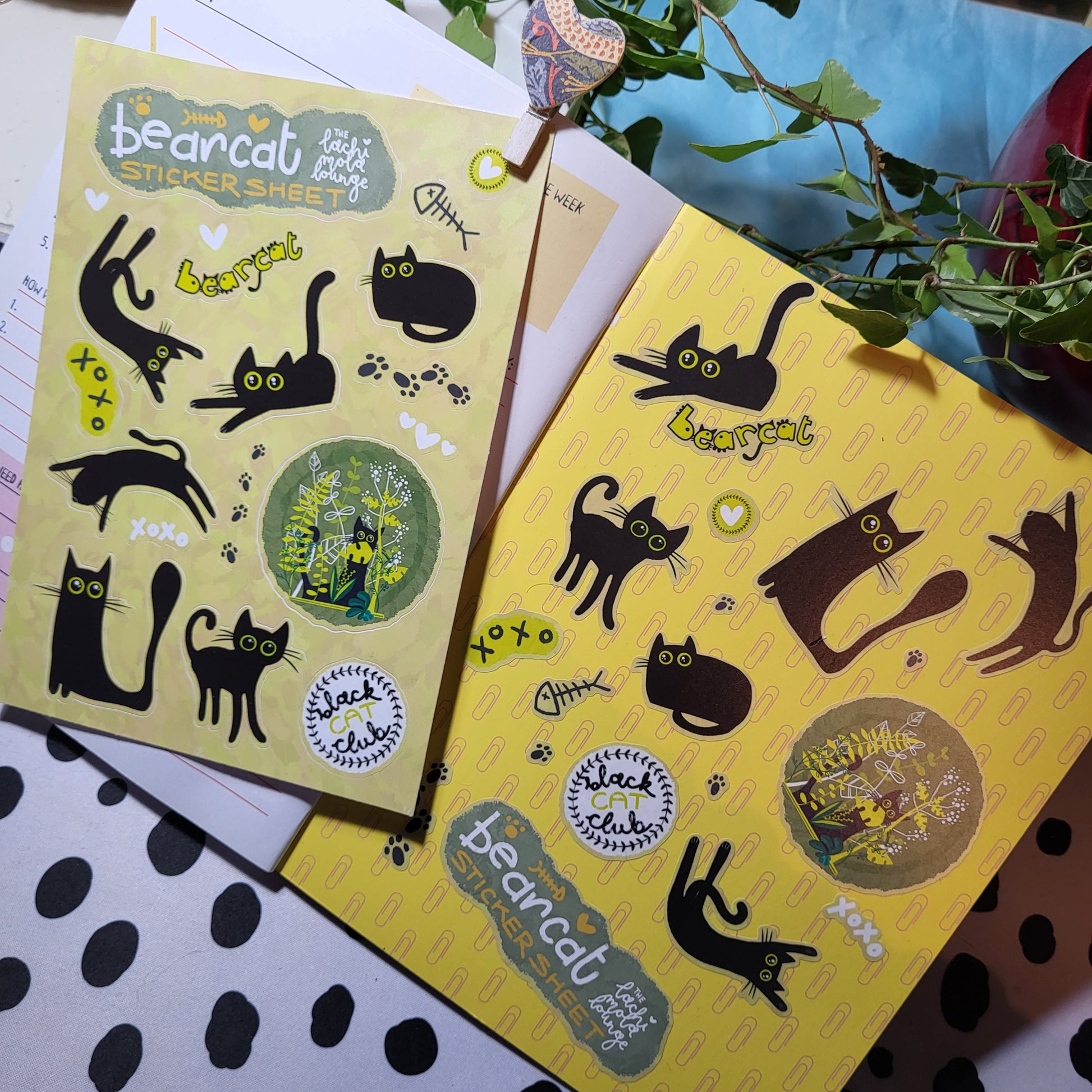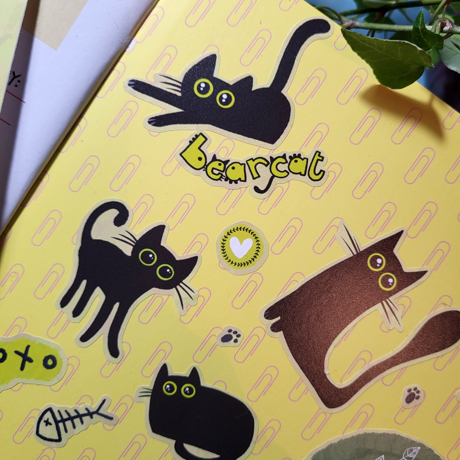 Bear Cat sticker sheet, A5 vinyl repositionable stickers