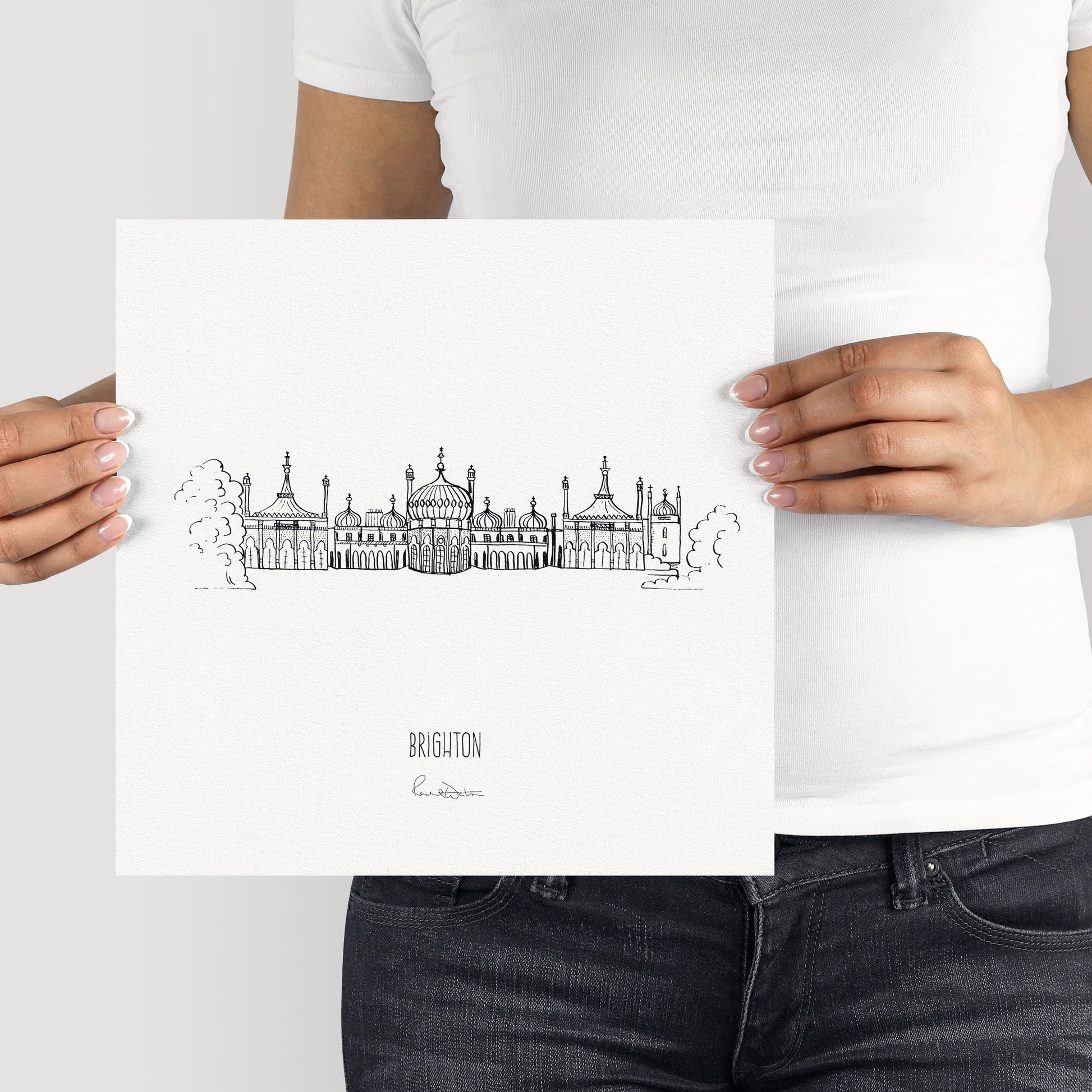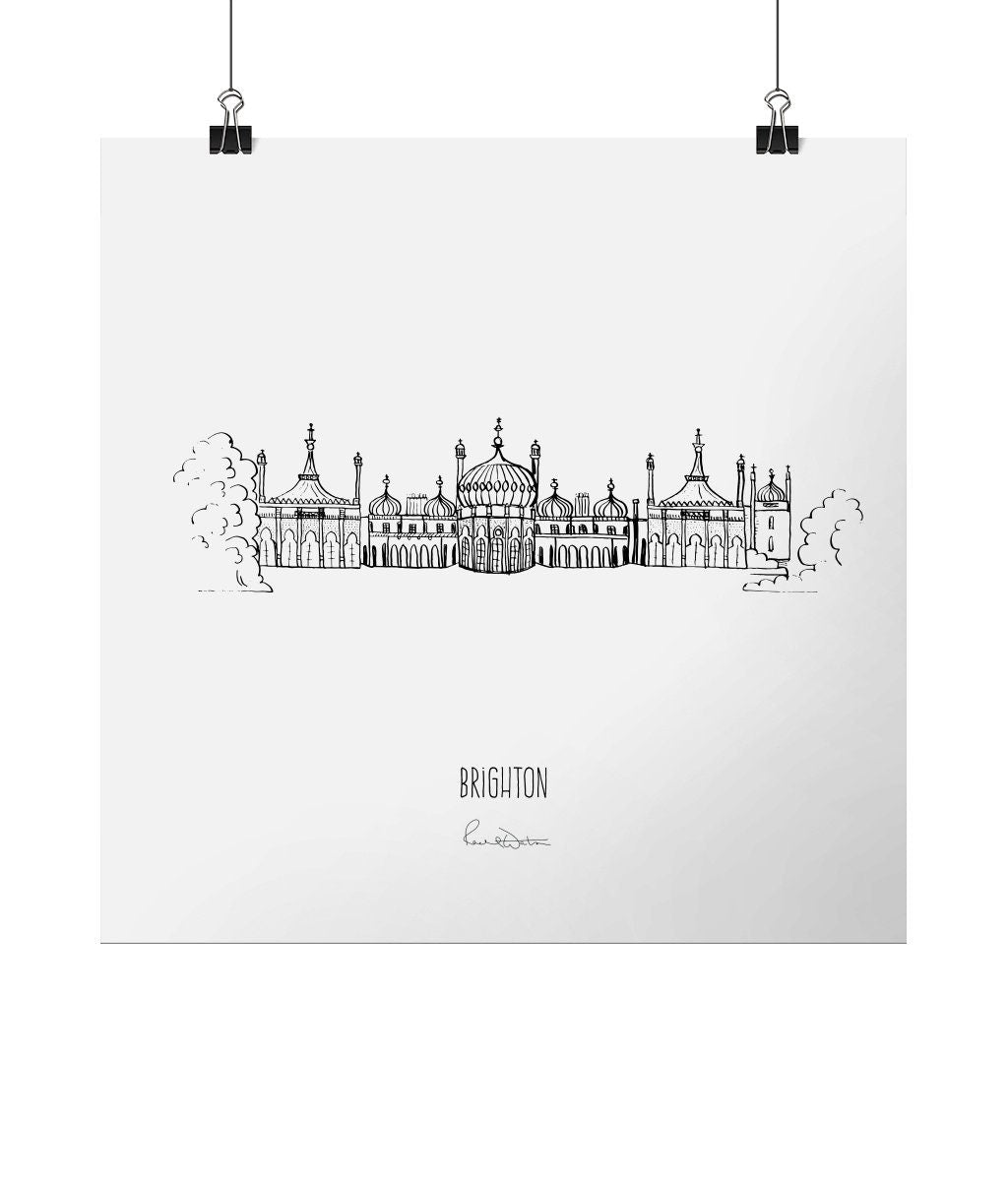 Doodley monochrome illustration of the iconic Brighton Pavillion, one of the UK's prettiest sights.