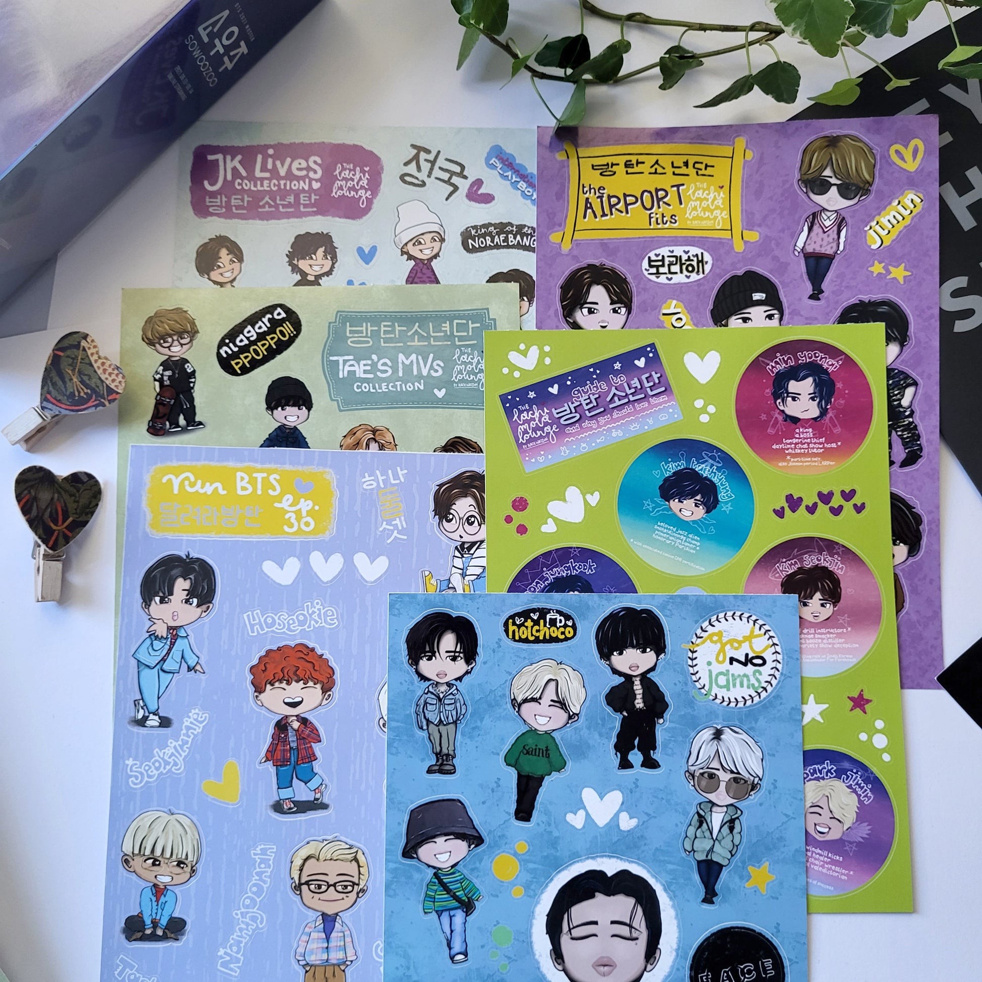 BTS chibi 6 sticker sheet BUNDLE, kpop journaling, bangtan stationery