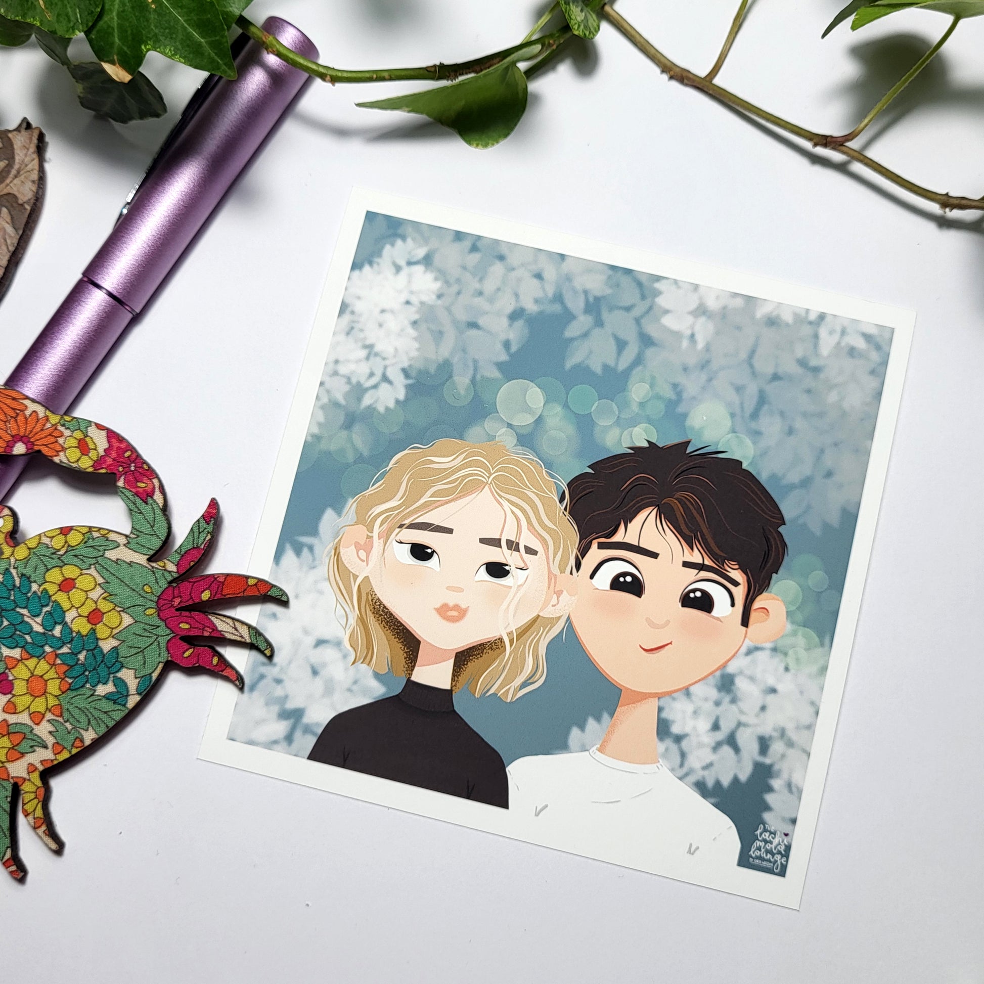 Upload a reference photo of your required figures - please ensure that the photo clearly shows the subjects' features - you can also add any specific notes to the text box stating if you'd like to ensure I include particular details (freckles, a mole, eye colour, for example), although this isn't mandatory. IF YOU ONLY HAVE SEPARATE PICTURES FOR YOUR TWO SUBJECTS, YOU CAN EMAIL ME THE SECOND - at thelachimolalounge@gmail.com