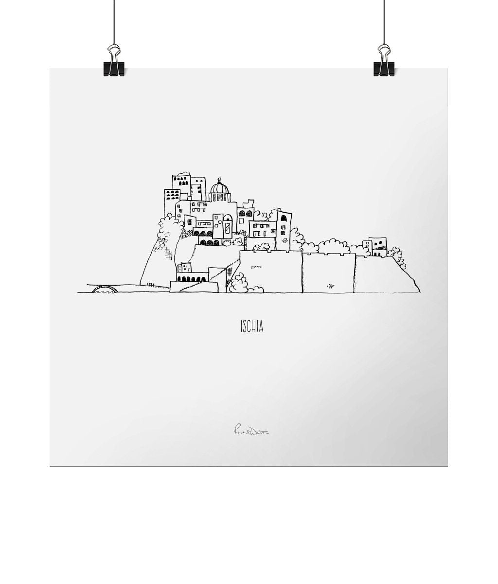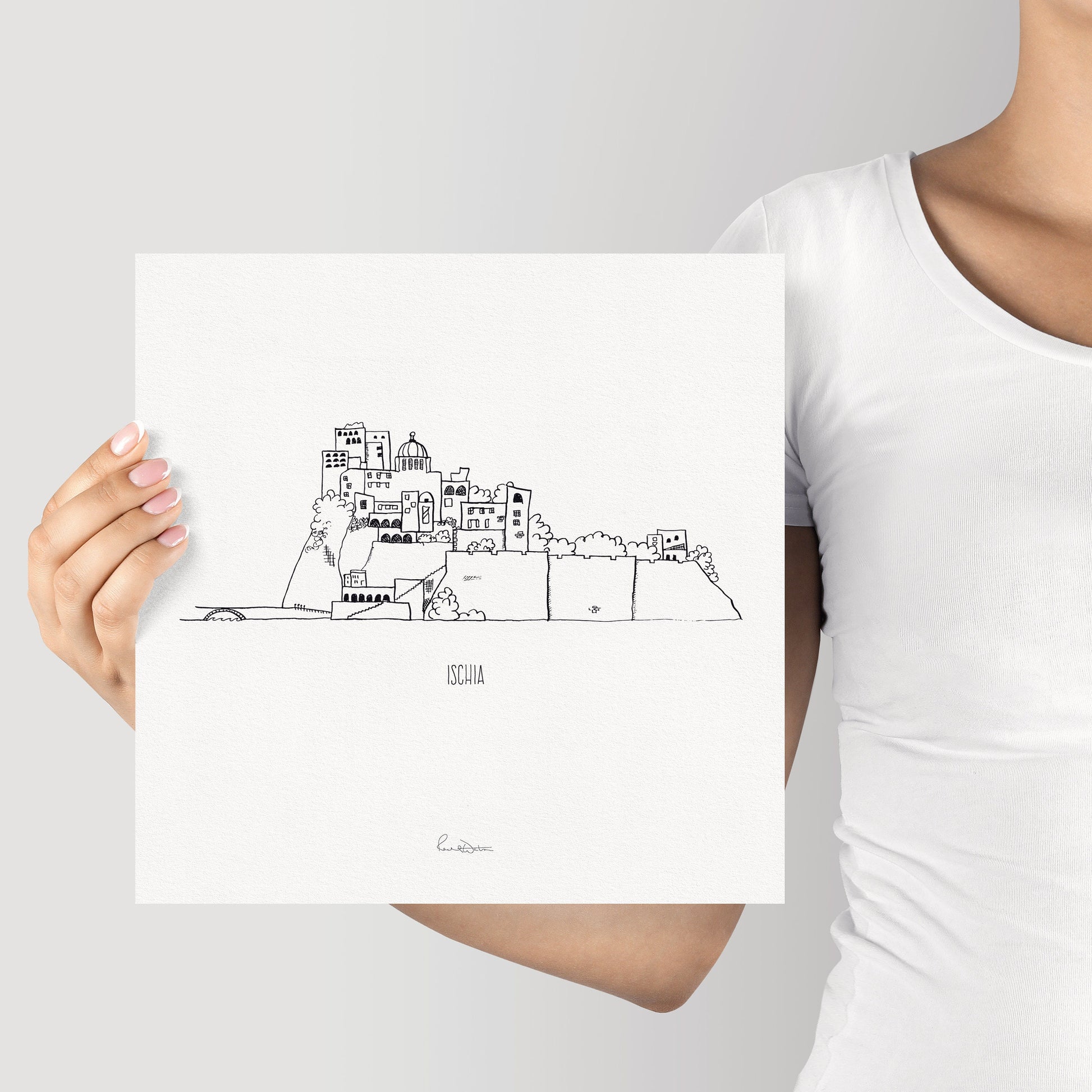Ischia fine art print, Italy wall art, Europe travel illustration, vacation gift, travel souvenir, Amalfi Coast print, Italian sights art