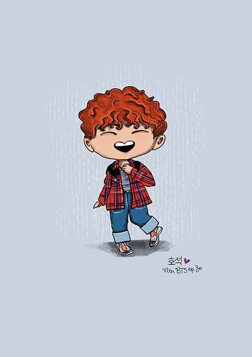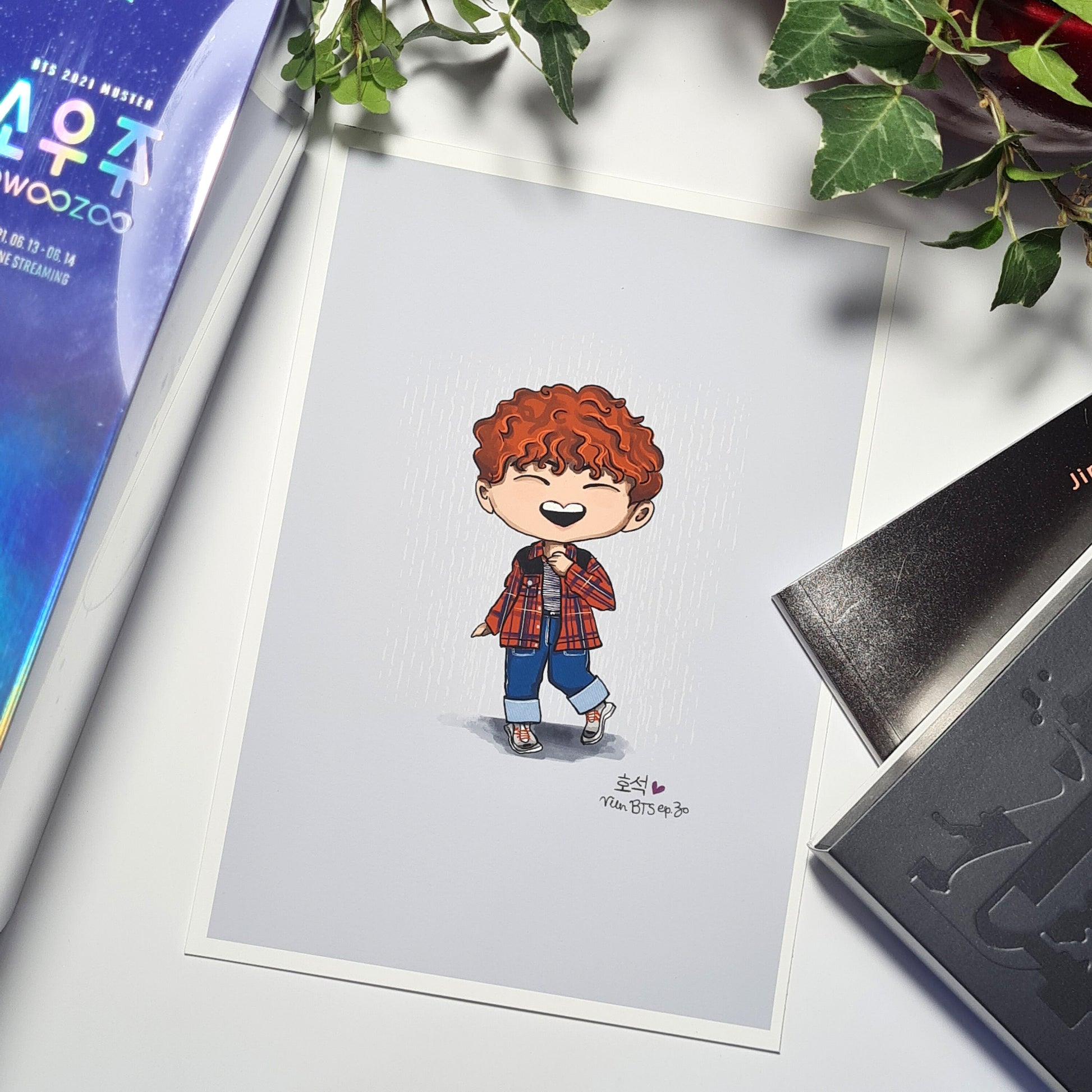 J-Hope Run BTS, Episode 30, chibi art print, Ep30 archive quality, Hoseok BTS illustration, bangtan character art, cute Hobi print