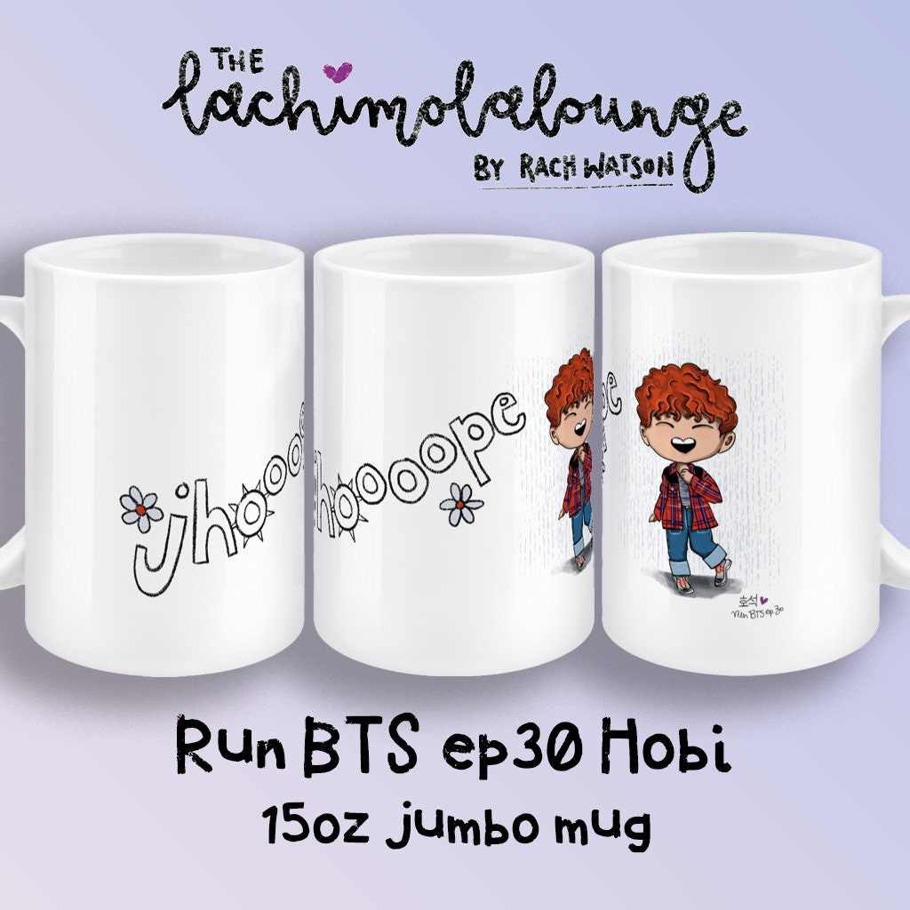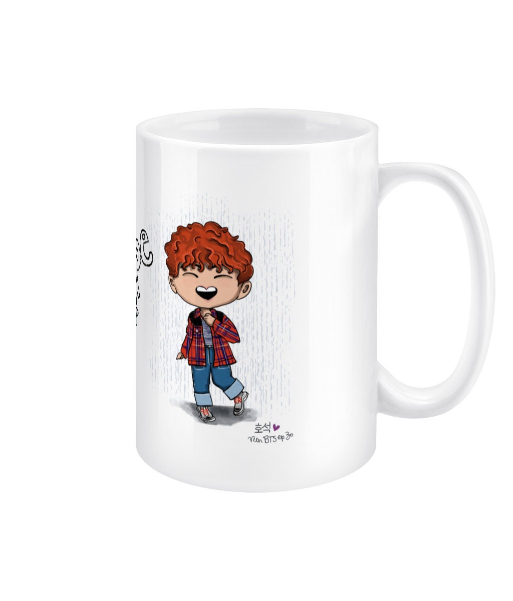 JHope Run BTS ep30 mug, BTS Hoseok fan gift, Hobi merch, 15oz white ceramic chibi Bangtan jumbo mug