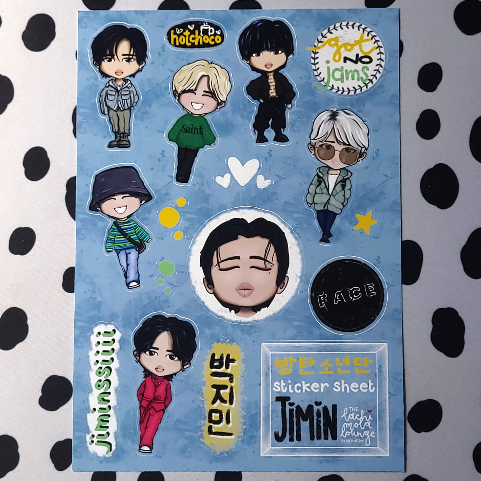Jimin BTS chibi sticker sheet, kpop journaling, bangtan stationery