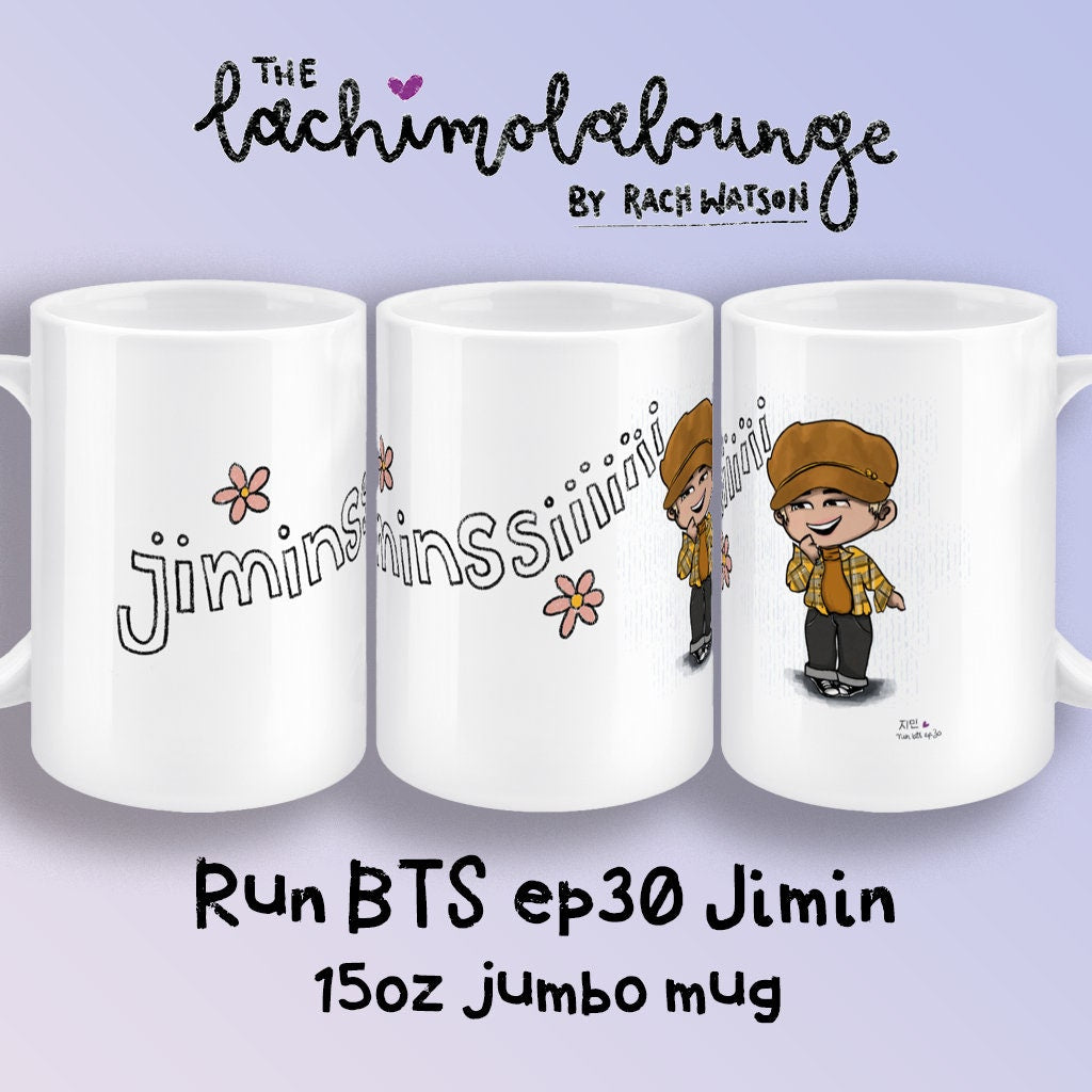Jimin Run BTS ep30 mug, BTS fan gift, Jiminssi merch, 15oz white jumbo ceramic chibi Bangtan mug