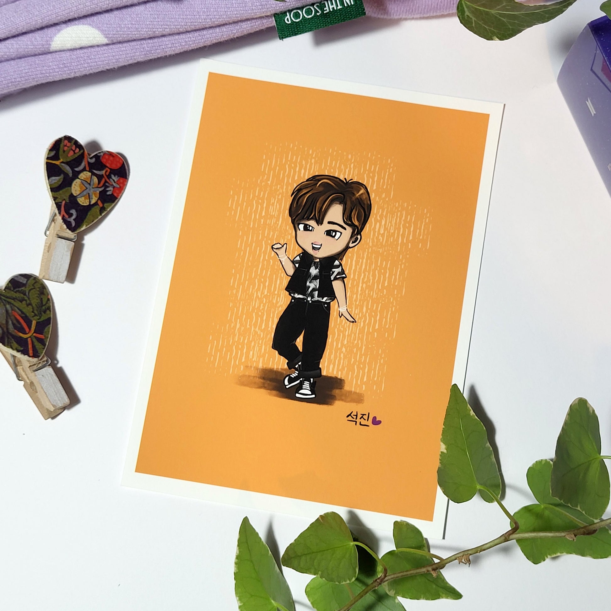 Jin Butter lineup chibi art print, archive quality, Seokjin BTS illustration, bangtan character art, cute Worldwide Handsome print