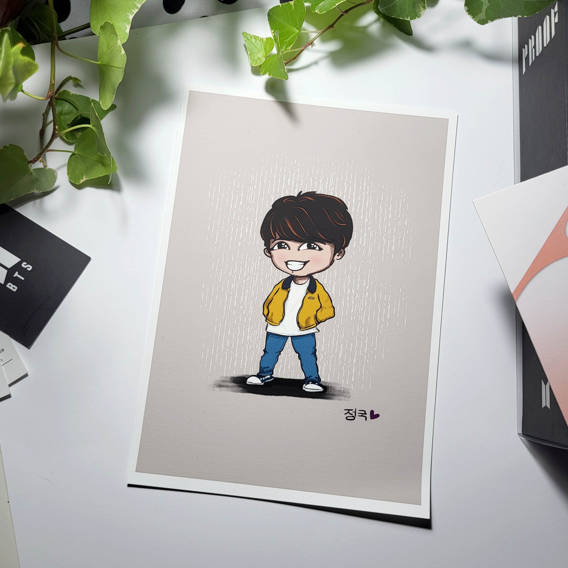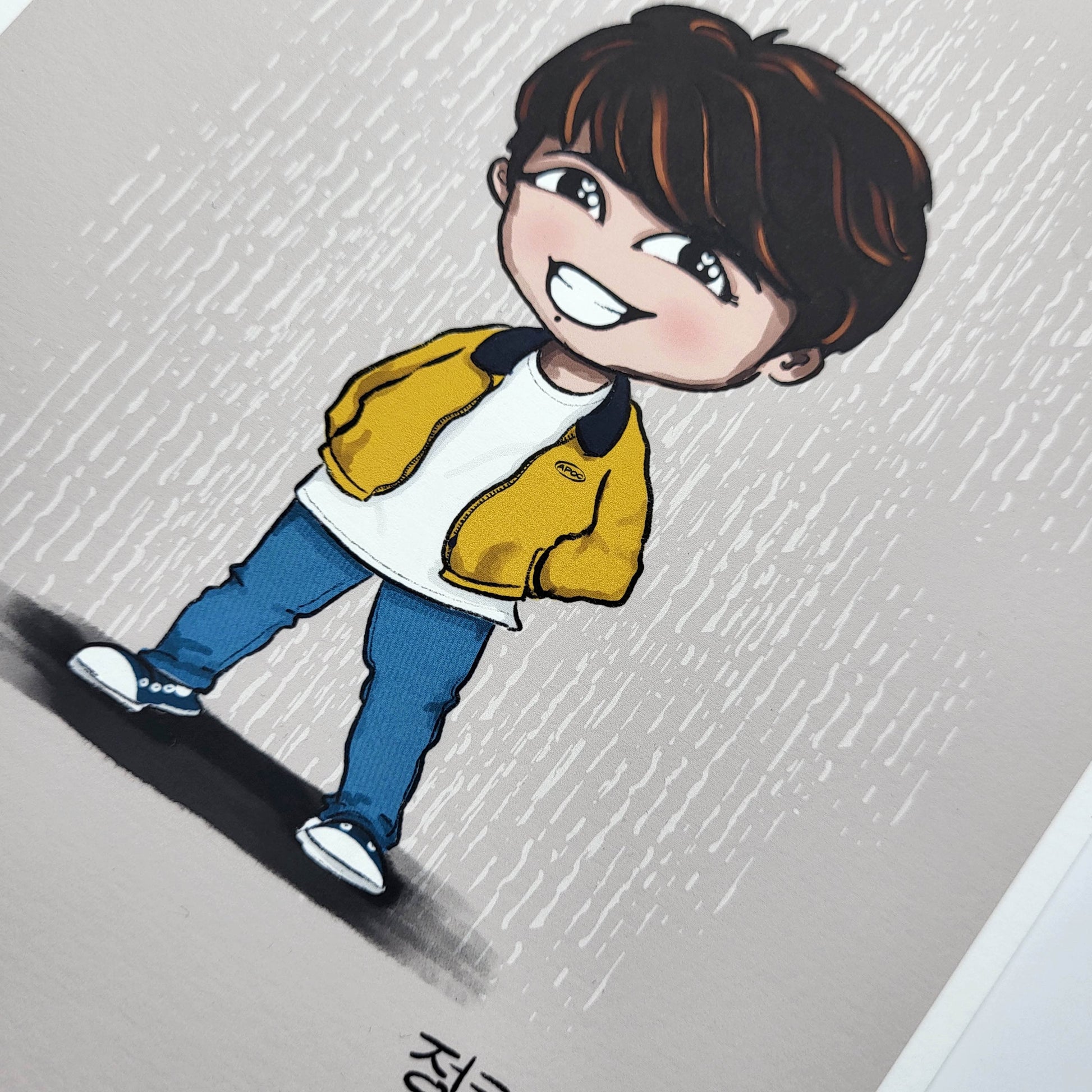 Jung Kook Euphoria chibi art print, BTS fan art, archive quality, JK illustration, bangtan character art, cute Jungkook print