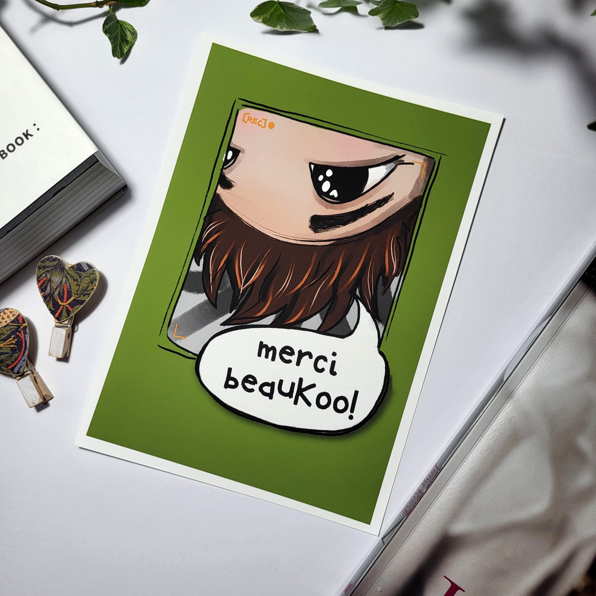 Jungkook Merci Beaucoup print, cute JK print, BTS cute art print, Jeon Jungkook chibi, Bangtan fan gift, ARMY merch