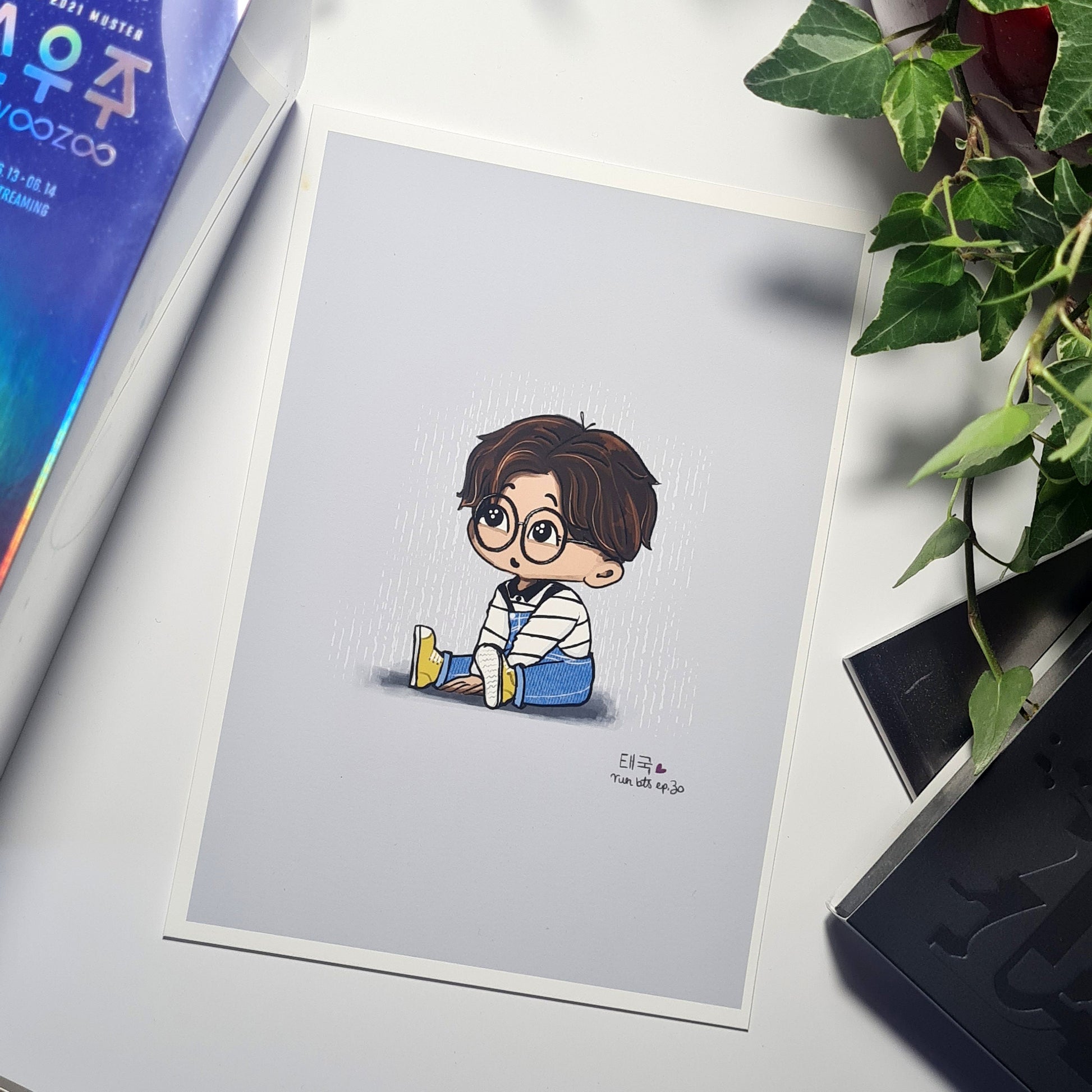 Jungkook Run BTS, Episode 30 chibi art print, archive quality, BTS illustration, bangtan character art, cute JK print