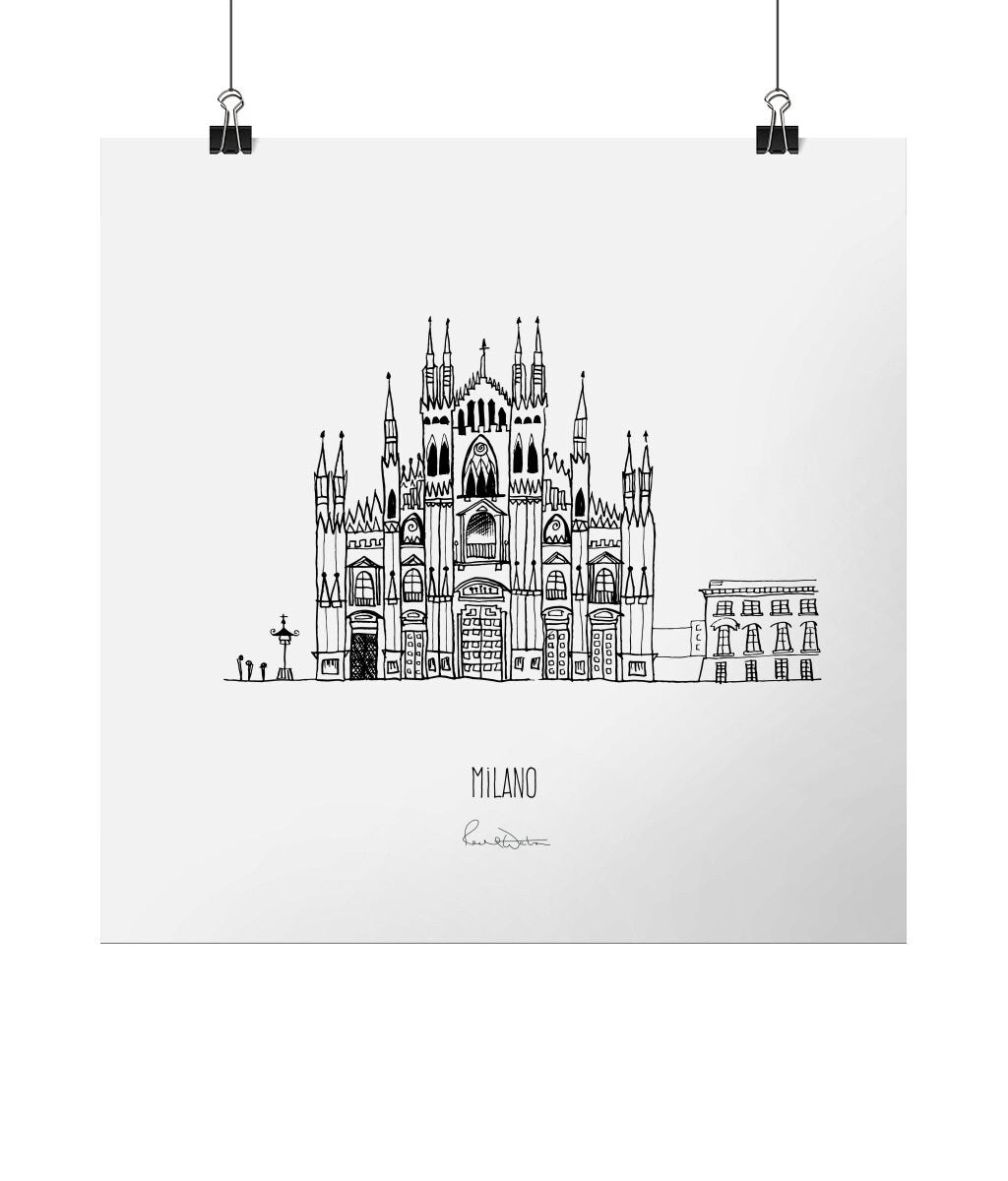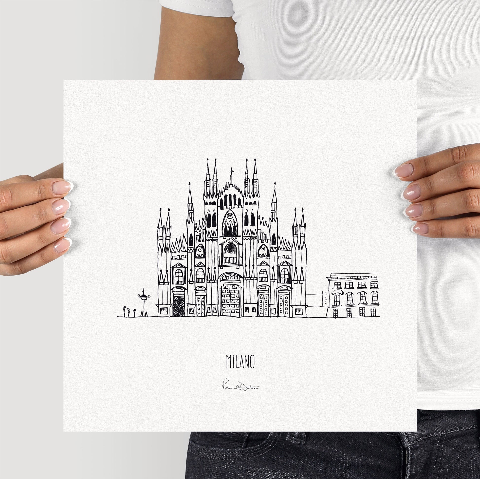 Milano Duomo print, Europe art print, Italy print, Milan cathedral wall art, lustre square paper print, architecture illustration, line art