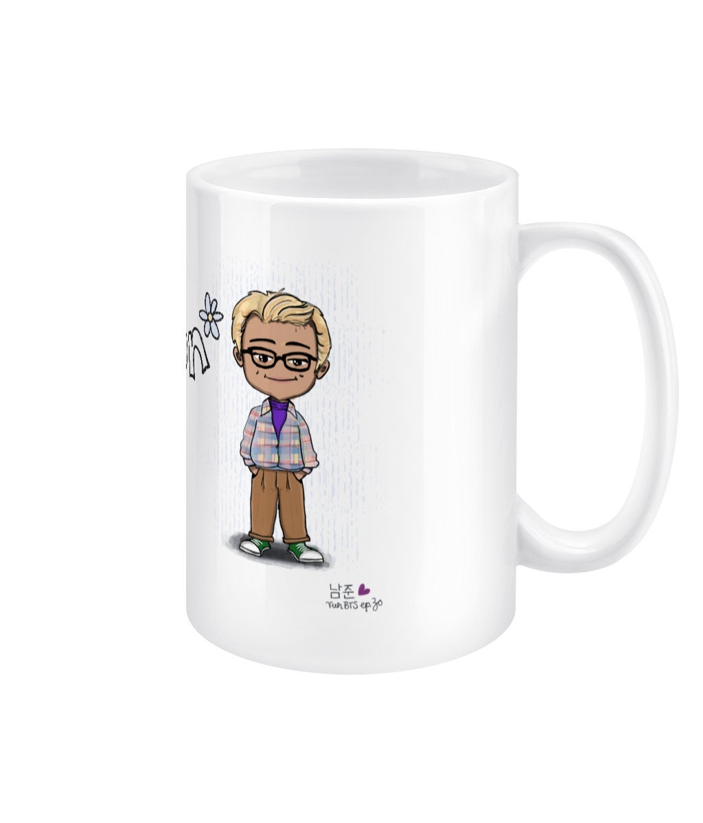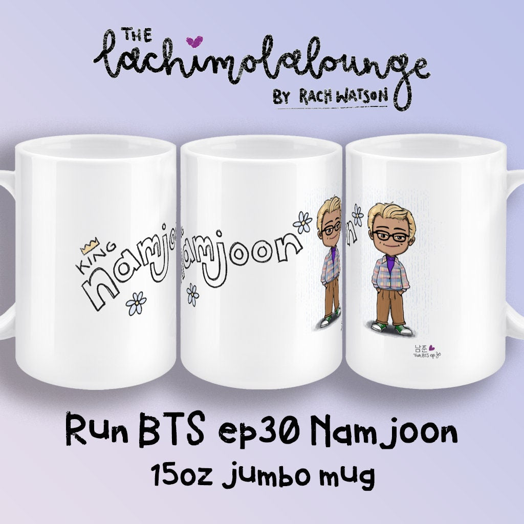 Namjoon Run BTS ep30 mug, BTS fan gift, RM merch, 15oz white ceramic chibi Bangtan jumbo mug