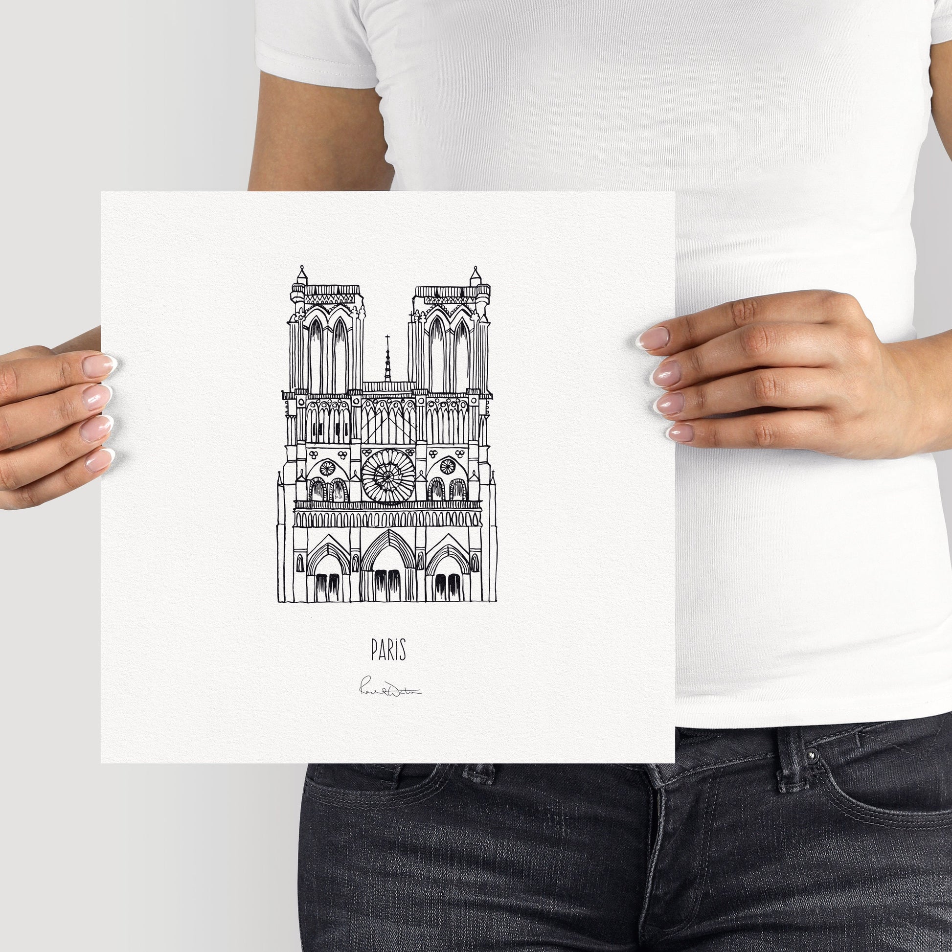 Classy, cute monochrome illustration of one of Paris' most iconic sights, Notre Dame. Pop it on your wall to remind you of a favourite trip - or a prompt to get one booked tout de suite!
