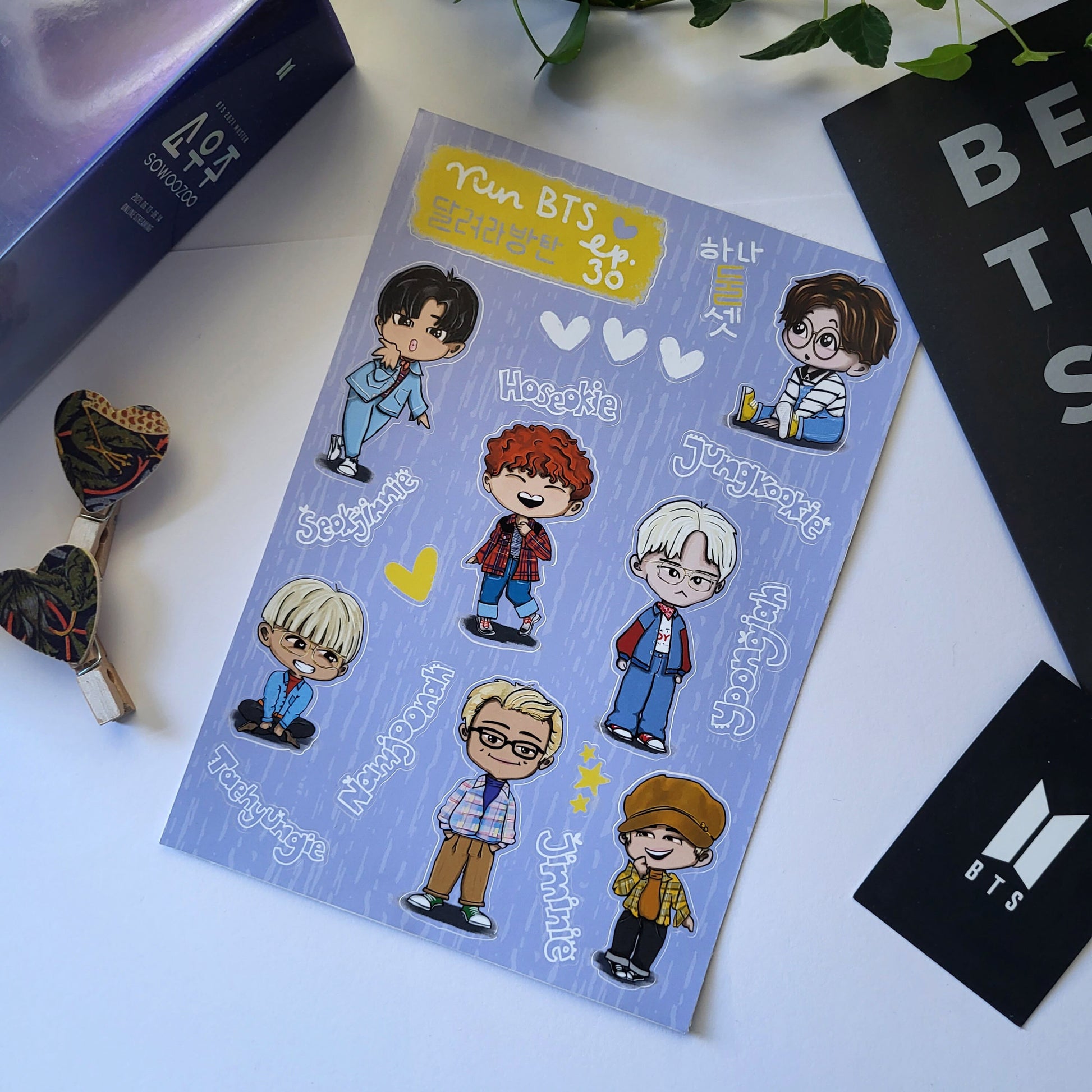 Run BTS chibi sticker sheet, kpop journaling, bangtan stationery
