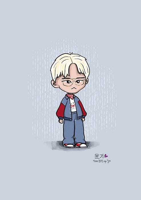 SUGA Run BTS chibi art print, Episode 30, archive quality, Yoongi BTS illustration, bangtan character art, cute AgustD print
