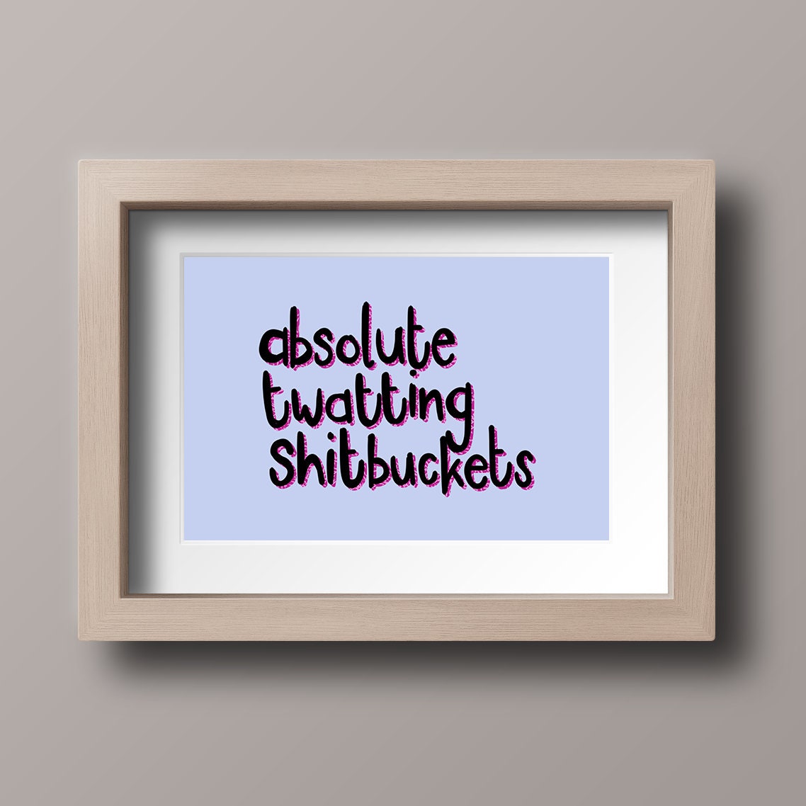SWEARY PRINT, Tw*tting Sh**buckets wall art, swearing lettering, profanity a4 print, cursing a5 illustration, pottymouth unframed print