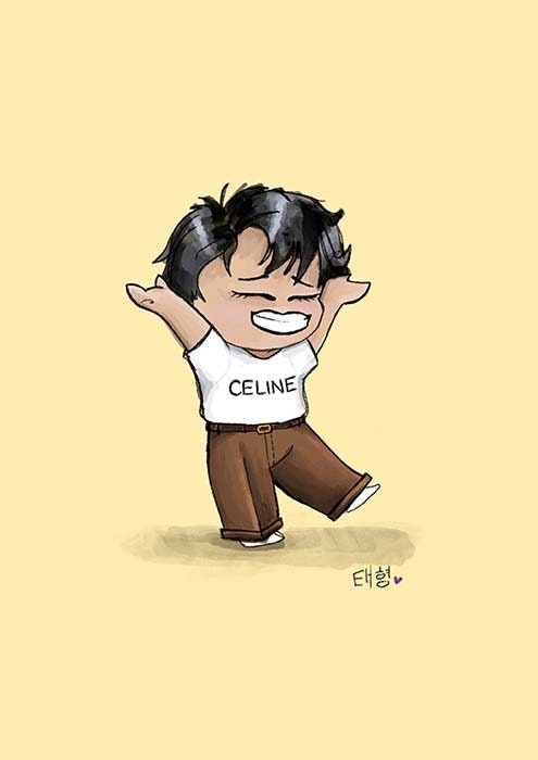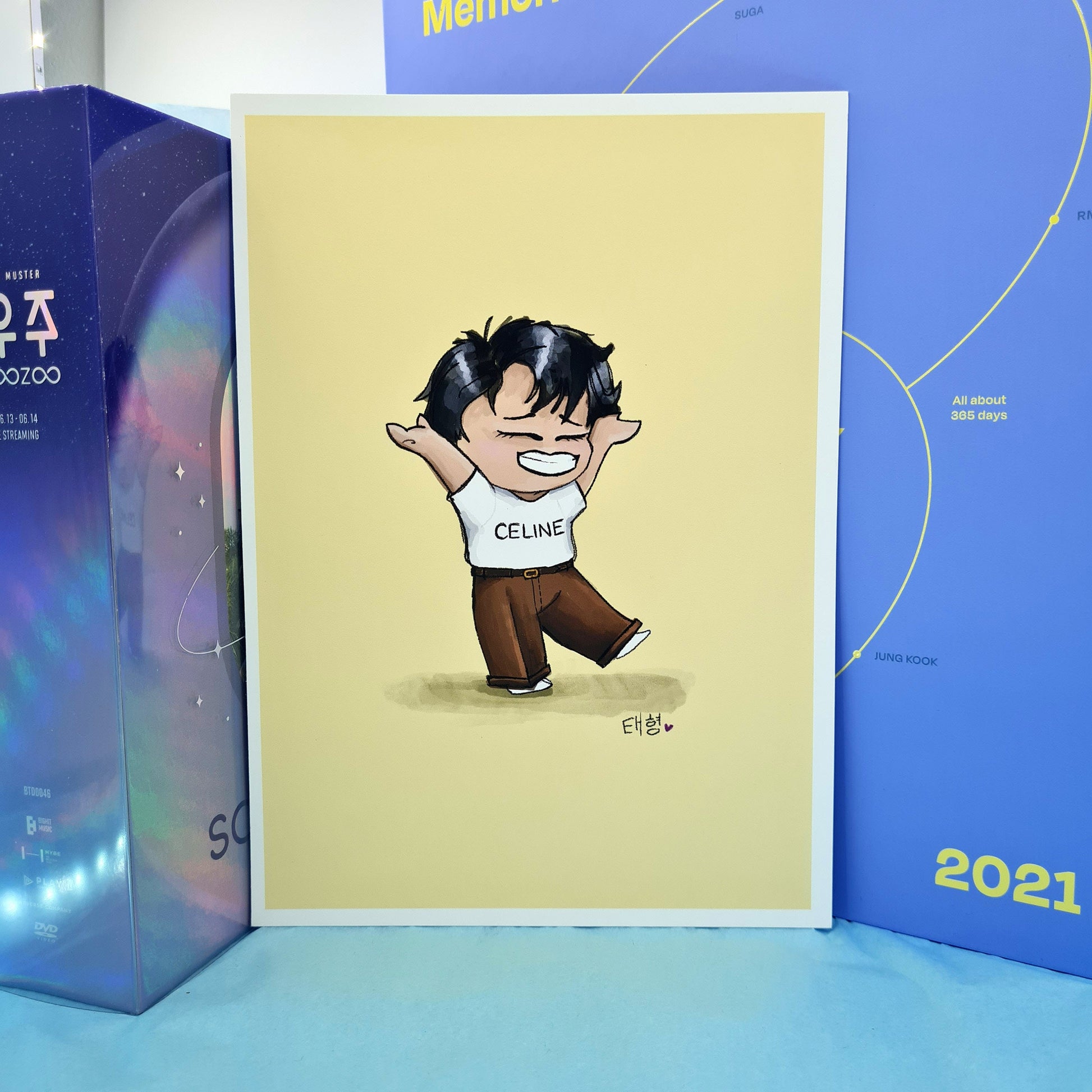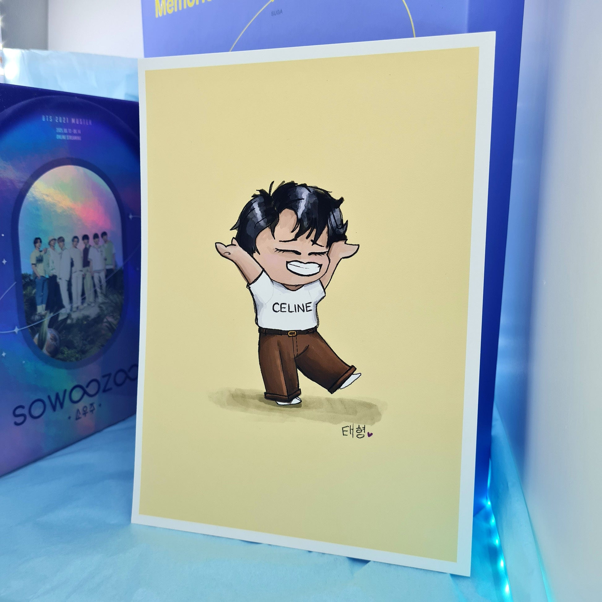 V chibi art print, archive quality, Taehyung BTS illustration, bangtan character art, cute TaeTae print