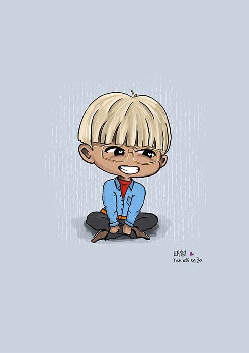 V Run BTS chibi art print, archive quality, Taehyung BTS illustration, Episode 30 Run BTS, bangtan character art, cute TaeTae print